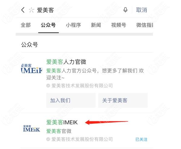 步驟一:關(guān)注愛美客官方微信公眾號