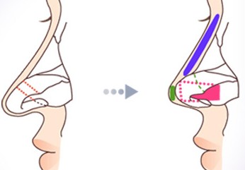 除去部分鼻中隔軟骨的末端的話,鼻尖即可上提。根據(jù)需要可將粗出的軟骨移植。
